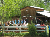 We let you choose which of our many wedding facilities will best suit your dreams. Included are two lakeside buildings (one is a circa 1940 tobacco barn - now a heritage museum with a large screened porch built over "Lake" Fran that comfortably seats 50; the other is a rustic barn that seats 100). Occasionally, larger wedding parties place their own tent between these buildings. We even offer hayrides and, for the bride, our beautifully restored 1926 Ford Model T "limousine!" Rain or shine, we can prepare for whatever works for you and your wedding party.